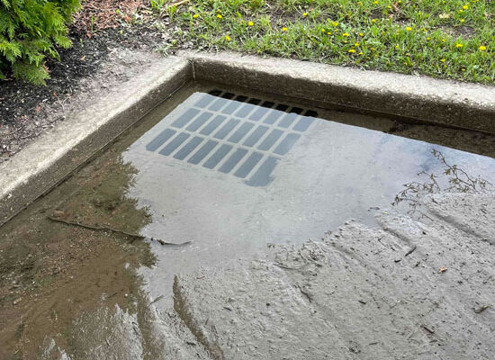 - Water pooling around the catch basin after rainfall