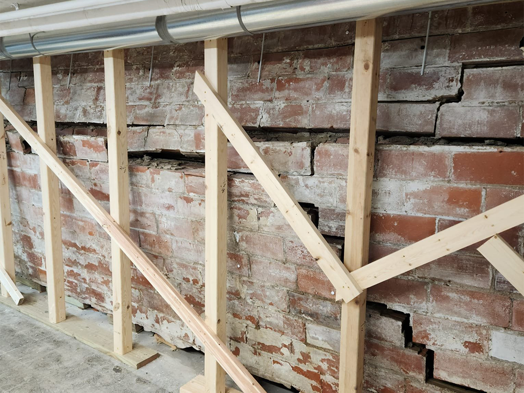 In severe cases, we install steel I-beams to provide immediate support and prevent further wall movement.